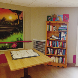 De nombreux locaux sont prévus pour se retrouver en- groupe et échanger, jouer ou participer aux activités dans un cadre amical.